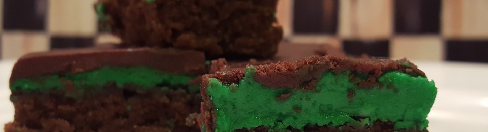 This recipe is broken down into 3 parts, there is a baked chocolate layer, the festive buttercream layer and then the melted chocolate topping over the top.  It is a little time consuming because you have to chill the pan between each layer but I promise it is worth the wait.